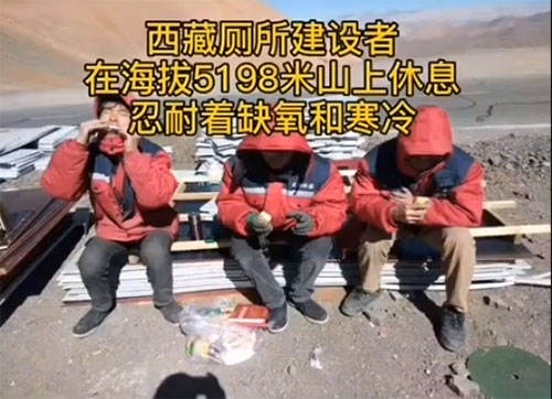 我們可以看到我們的廁所建造者受著高海拔缺氧、寒冷、大風的惡劣環境下依然在堅持著廁所的建設施工,廁所的外形已經成型。那么是什么支撐著雨施捷人在如此高海拔,寒冷缺氧的情況下冒著大風繼續建造廁所著,是我們雨施捷人心中堅定的信念,堅信只要我們肯努力付出就一定可以實現我們的目標,是希望在高海拔的山區內的人們也可以用上我們生產安裝的干凈、整潔、環保的公共廁所。