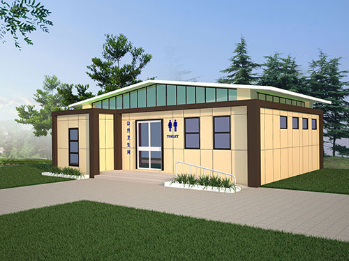 環保廁所不僅可以建成固定的裝配式廁所,還可以建成可移動的移動式廁所。移動式廁所設施小巧便于施工安裝,可由工廠生產完成現場進行組裝,對場地要求少。